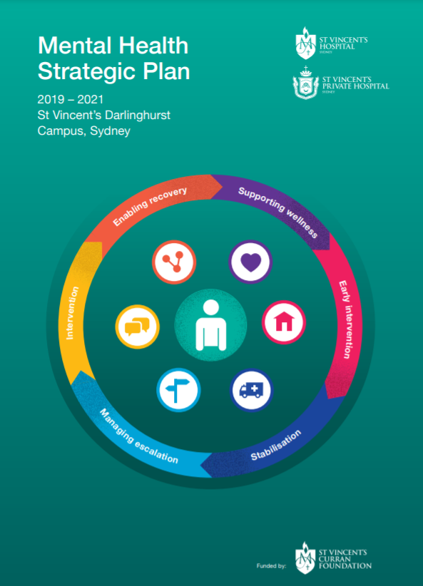St Vincent's Mental Health Strategic Plan You are here:HomeOur servicesList of servicesMental HealthSt Vincent's Mental Health Strategic Plan The Mental Health Strategic Plan includes four priorities which will guide our mental health services in the coming years: • Community outreach – to grow our services beyond the hospital walls • Digital mental health – to continue to lead and innovate in eHealth and virtual care • Precision mental health – for tailored treatments to deliver the best possible outcomes • An Urban Heath Centre – for early intervention supports for consumers and their families The plan also commits us to strengthen consultation and liaison services and complex care coordination. While also focussing on mental health education and research excellence. Download the St Vincent’s Mental Health Strategic Plan here.
